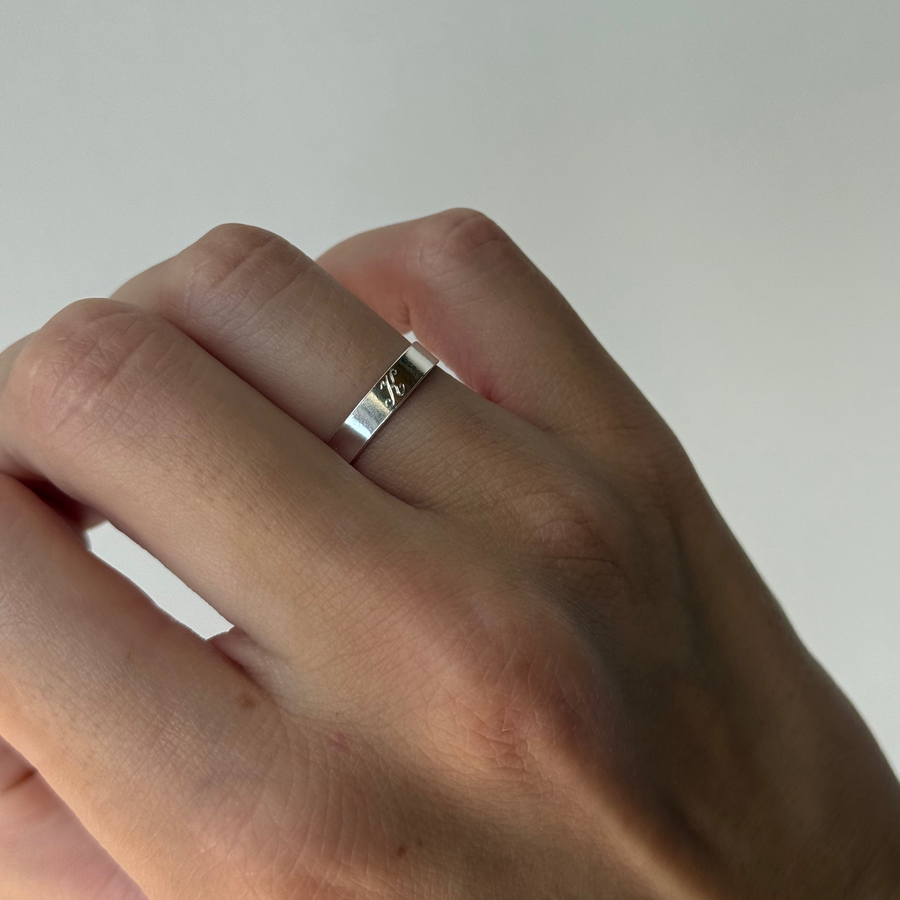 The Silver Engraved Band Ring is a timeless and customizable jewelry essential that adds a personal touch to any collection. With the option to customize engraving in two locations using four fonts, the Silver Engraved Band Ring looks stunning worn alone or stacked with your favorite rings for a layered look.